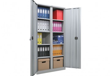 - максимальная вместимость папок шириной 75 мм: на полку – 5 шт, на весь шкаф – 50 шт.