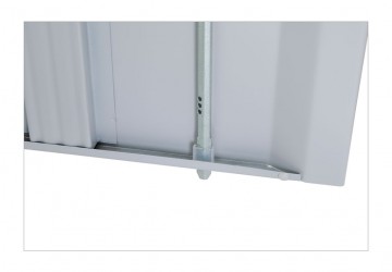 - ригели из оцинкованной стали и пластиковые втулки обеспечивают бесшумный ход дверей и надежное запирание шкафа