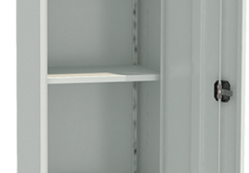 - Три регулируемые полки, один ригельный замок с ручкой.