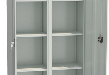 - В каждой секции по 3 регулируемых полки, в каждой секции ригельный замок с ручкой.