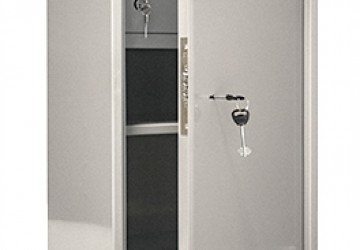 Шкаф представляет собой сварную металлическую конструкцию прямоугольной формы. Корпус и дверь шкафа изготовлены из стального листа толщиной 1,2 мм. Дверь изнутри усилена панелью коробчатого сечения из стального листа толщиной 0,8 мм. В двери шкафа установлен врезной 6-ти сувальдный замок фирмы «Бордер» (пр-во Россия). В комплекте – 2 ключа. Шкаф комплектуются одной съемной регулируемой по высоте полкой и оборудован отсеком ограниченного доступа (трейзер), запираемым замком «почтового» типа. Петли шкафа – внутренние. Срок службы 10 лет.
