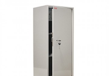 Шкаф представляет собой сварную металлическую конструкцию прямоугольной формы. Корпус и дверь шкафа изготовлены из стального листа толщиной 1,2 мм. Дверь изнутри усилена панелью коробчатого сечения из стального листа толщиной 0,8 мм. Шкаф комплектуются 2-мя съемными регулируемыми по высоте полками, дополнительно оборудован отсеком ограниченного доступа (трейзер), запираемый на замок «почтового» типа. Петли шкафа – внутренние.