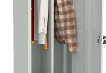 - Комплектуется вертикальной перегородкой, общей полкой для головных уборов, полкой для обуви, 4 крючками, 2 перекладинами, 1 замком повышенной секретности.