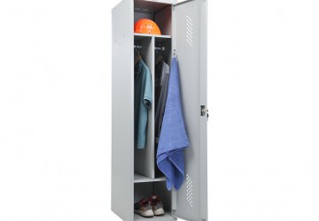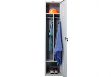 Шкаф металлический практик LS имеет конструкцию, которая без лишних усилий позволяет собрать или разобрать его. Крепление его частей происходит за счет саморезов и зацепов. Для притока свежего воздуха предусмотрены вентиляционные отверстия. Также по желанию под заказ могут быть добавлены дополнительные опции. Все шкафы для раздевалок в нашем каталоге. В том числе и LS-11-40D имеют необходимые сертификаты.