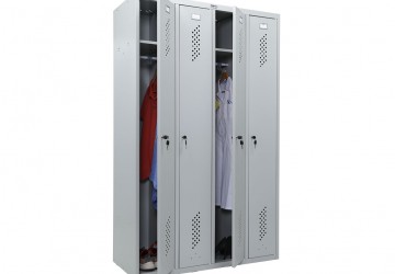 Шкаф металлический практик LS имеет конструкцию, которая без лишних усилий позволяет собрать или разобрать его. Крепление его частей происходит за счет саморезов и зацепов. Для притока свежего воздуха предусмотрены вентиляционные отверстия. Также по желанию под заказ могут быть добавлены дополнительные опции. Все шкафы для раздевалок в нашем каталоге. В том числе и LS-41 имеют необходимые сертификаты.