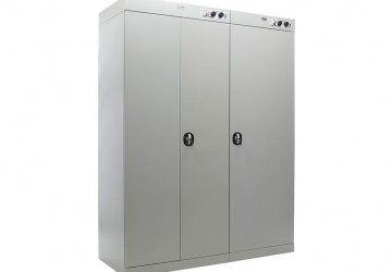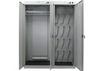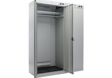- шкаф состоит из двух независимых секций. Первая двухдверная для одежды, с перекладиной для вешалок и полкой. Вторая - для сушки обуви, оборудована патрубками для развешивания