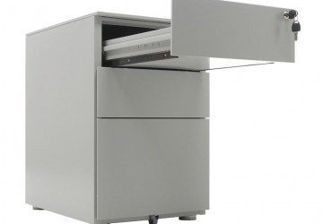 - Опции: пластиковые лотки и металлический ящик для канцелярских принадлежностей и других предметов. Возможность комбинирования цветов: корпус + фасады ящиков и крышка (конструкция тумбы металл+металл). Или отделка фасадов ящиков и крыши тумбы ламинированной плитой ЛДСП
