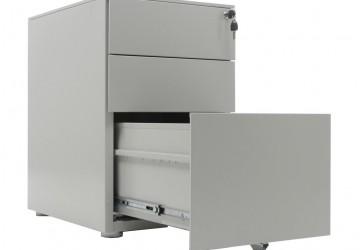 - Нагрузка на ящики для канцелярских принадлежностей – 10 кг, на нижние файловые – 25 кг (в основании файлового ящика установлено колесо, увеличивающее грузоподъёмность)