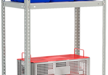 - Для обеспечения жесткости конструкции стеллажа, нижняя горизонтальная пока устанавливается на расстоянии не более 150 мм от пола и крепится по 4 углам к стойкам через металлические уголки жесткости. Верхние уголки жесткости крепятся к 4 углам полки, расположенной на расстоянии не более 2 м от пола.