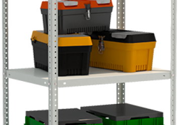 - Конструктив металлического полочного стеллажа СТФ позволяет собирать, как отдельно стоящий стеллаж, так и многосекционный стеллаж, состоящий из основной секции и неограниченного числа дополнительных секций.