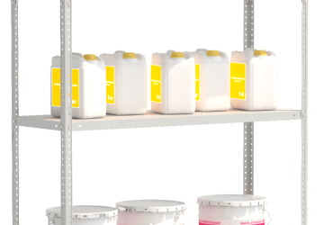 - Стойки и полки окрашены полимерной (порошковой) краской RAL 7035 светло-серого цвета.