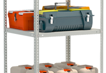- Конструктив металлического полочного стеллажа СТФ позволяет собирать, как отдельно стоящий стеллаж, так и многосекционный стеллаж, состоящий из основной секции и неограниченного числа дополнительных секций.