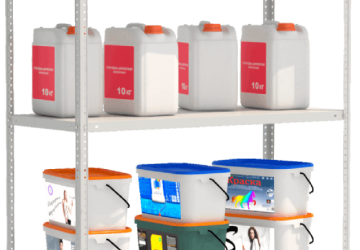 - Стойки и полки окрашены полимерной (порошковой) краской RAL 7035 светло-серого цвета.
