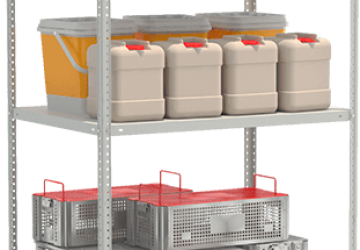 - Стойки и полки окрашены полимерной (порошковой) краской RAL 7035 светло-серого цвета.