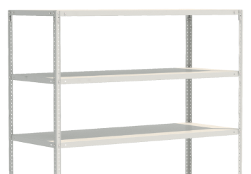 - Конструктив металлического полочного стеллажа СТФ позволяет собирать, как отдельно стоящий стеллаж, так и многосекционный стеллаж, состоящий из основной секции и неограниченного числа дополнительных секций.
