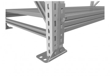 - Крепление балки к стойкам безболтовое. Балка крепится к стойке на зацепах и закрепляется фиксатором, предохраняющим балку от случайного подъема. Балки могут переставляться по высоте с шагом 50 мм