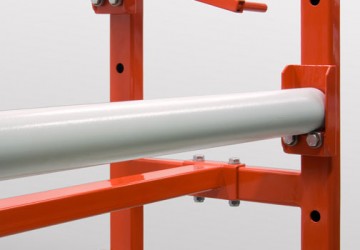 Конструкция данного изделия дает возможность переустанавливать уровни демонстрируемой продукции с шагом 120 мм по высоте стойки, при этом количество уровней будет напрямую зависеть от внешнего диаметра рулона с напольным покрытием.