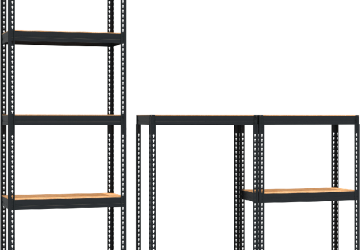 Для организации специальных мест хранения могут применяться металлические стеллажи разных конфигурации. Так универсальный стеллаж MZ-PROFIL 180х75х35 имеет без болтового соединения. Для его производства используется сталь специальной марки, а для предотвращения появления ржавчины и мелких царапин его поверхность покрыта порошковой краской. Полки выдерживают до 170 кг распределённой нагрузки.