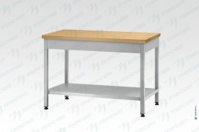 - Тип покрытия: Столешница – бук 40 мм, каркас/полка – сталь с полимерно-порошковым покрытием,