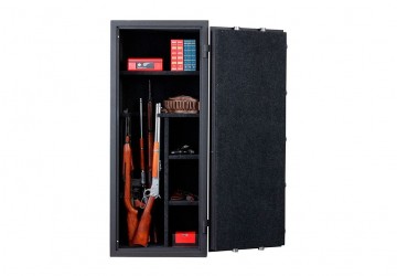 Данная модель оружейного сейфа может использоваться для хранения оружия и боеприпасов к нему. Сейф соответствует все предъявляемым к нему требованиям. Конструкция устойчива ко взлому и соответствует классу влагостойкости А1/S1. TIGER 60 рассчитан на хранение нескольких единиц оружия. В нашем каталоге вы можете найти модели оружейных сейфов на 5 стволов.