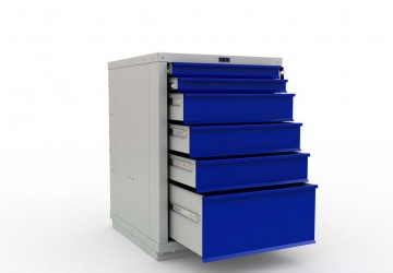 | Цвет: | корпус серый полуматовый (RAL 7038), лицевая панель ящиков и дверцы тумбы – синий (RAL 5002) |