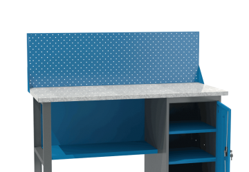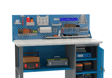 - Для ограничения доступа к содержимому тумбы дверца имеет замок, что позволяет использовать верстак как место хранения различных вещей
