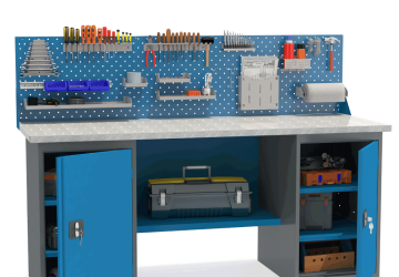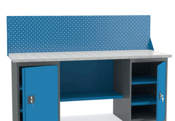 - Верстак укомплектован двумя тумбами с полками.