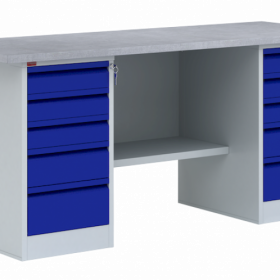 - две тумбы верстачные Т - 2Т с пятью выдвижными ящиками (нагрузка 30 кг), на телескопических направляющих, запирающимися на общий замок.